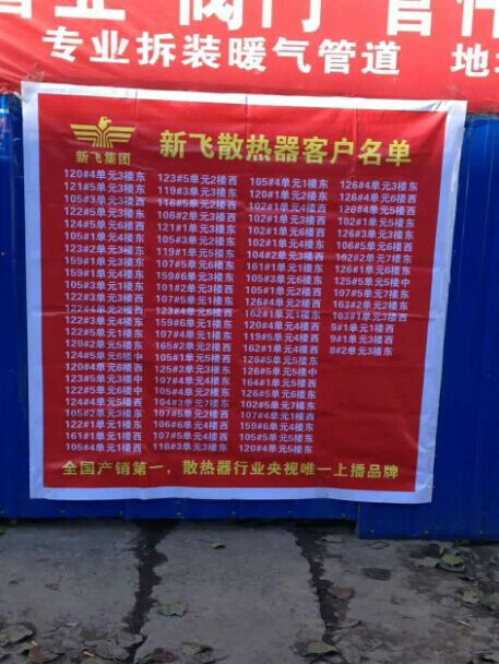 鶴壁市山城區(qū)礦務(wù)局家屬院小區(qū)集中供暖改造急迫,新飛散熱器駐鶴壁業(yè)務(wù)人員在當(dāng)?shù)卮砩痰膹?qiáng)有力支持下,在廣大同仁的共同努力下,我們簽單過(guò)百戶,感謝廣大業(yè)主的信任和支持!