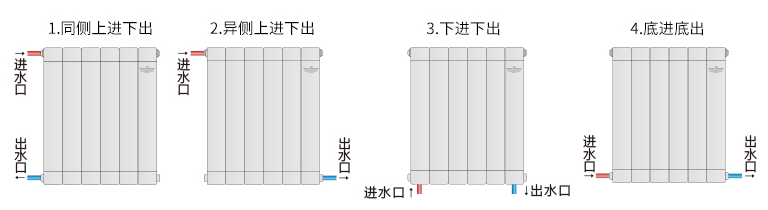 暖氣片的進出水方式是在暖氣生產(chǎn)前就必須確定的,按照家里暖氣片管道的預(yù)留方式進行設(shè)計生產(chǎn)。