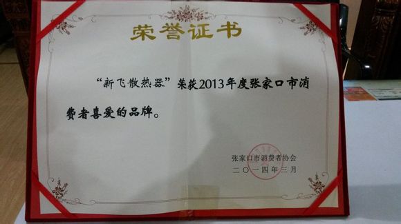 隨著新飛散熱器有限公司不斷發(fā)展與壯大,公司在央視廣告和各地不同形式廣告的大力投放,產(chǎn)品的不斷更新和質(zhì)量不斷提高,作為暖氣片十大品牌之一深受廣大消費(fèi)者的喜愛和認(rèn)可。特別是張家口市,3.15消費(fèi)者協(xié)會在張家口市調(diào)查、評選,我們榮獲張家口市消費(fèi)者喜愛和放心品牌。我們會秉承公司的理念,不斷向前飛躍,來回報廣大消費(fèi)者。