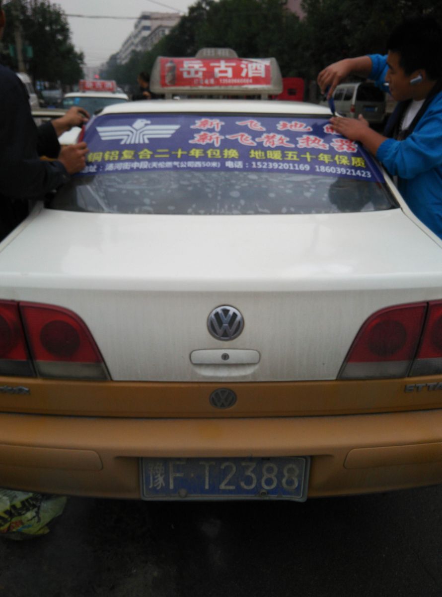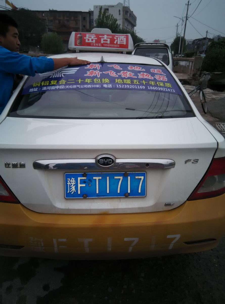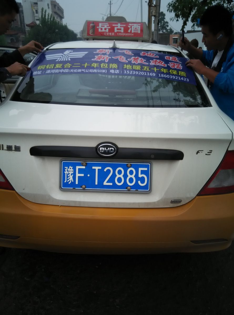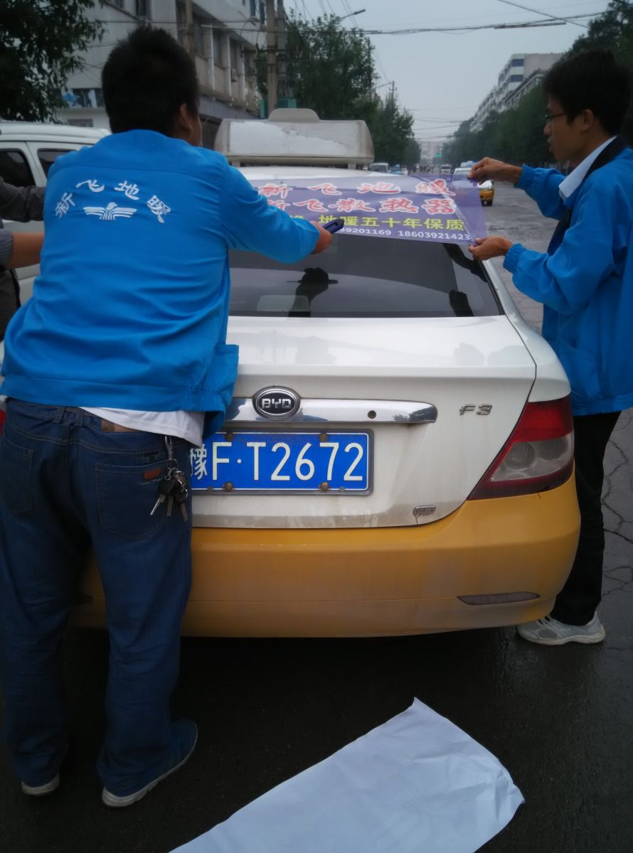 為響應(yīng)新鄉(xiāng)市新飛散熱器有限公司十一優(yōu)惠政策,鶴壁代理商王經(jīng)理在全市舉行團(tuán)購(gòu)簽購(gòu)會(huì),買新飛散熱器抽新飛冰箱大獎(jiǎng),氣氛熱烈,轟動(dòng)全城!為配合公司宣傳,特做百輛出租車廣告。